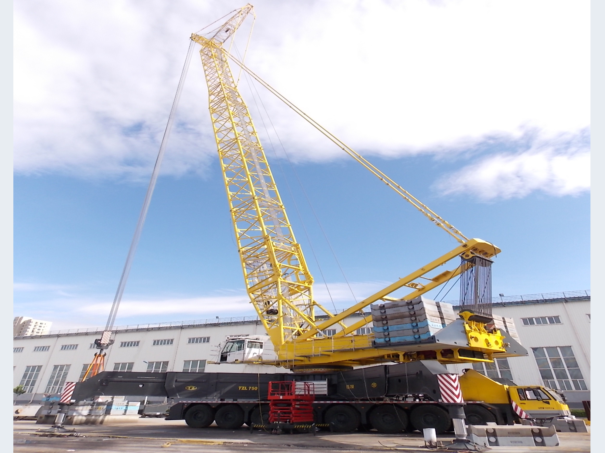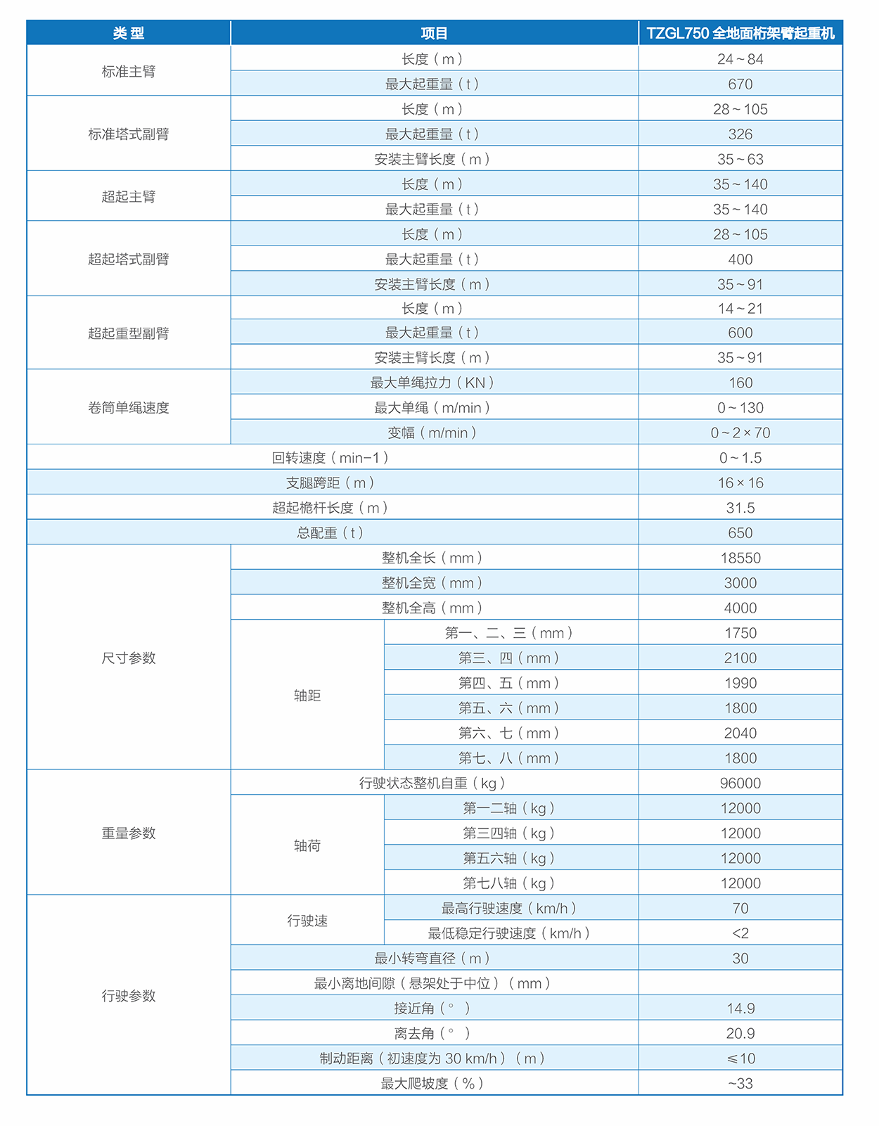 全地面桁架臂起重機(jī),可廣泛應(yīng)用于風(fēng)電建設(shè)、橋梁建設(shè)、石油化工、市政工程等吊裝領(lǐng)域,滿足2.5MW~3.0MW風(fēng)機(jī)安裝和檢修的要求,是針對(duì)風(fēng)電安裝特別設(shè)計(jì)的一款高效率起重機(jī)。該類起重機(jī)上車采用同等噸位履帶起重機(jī)轉(zhuǎn)臺(tái)、臂架、超起系統(tǒng),下車采用重載全地面底盤,配置大跨度星型支撐液壓支腿用于起吊作業(yè)。整車配置有主臂、塔臂、超起主臂、超起塔臂、超起重型臂、基本風(fēng)電臂、超起風(fēng)電臂等工況。