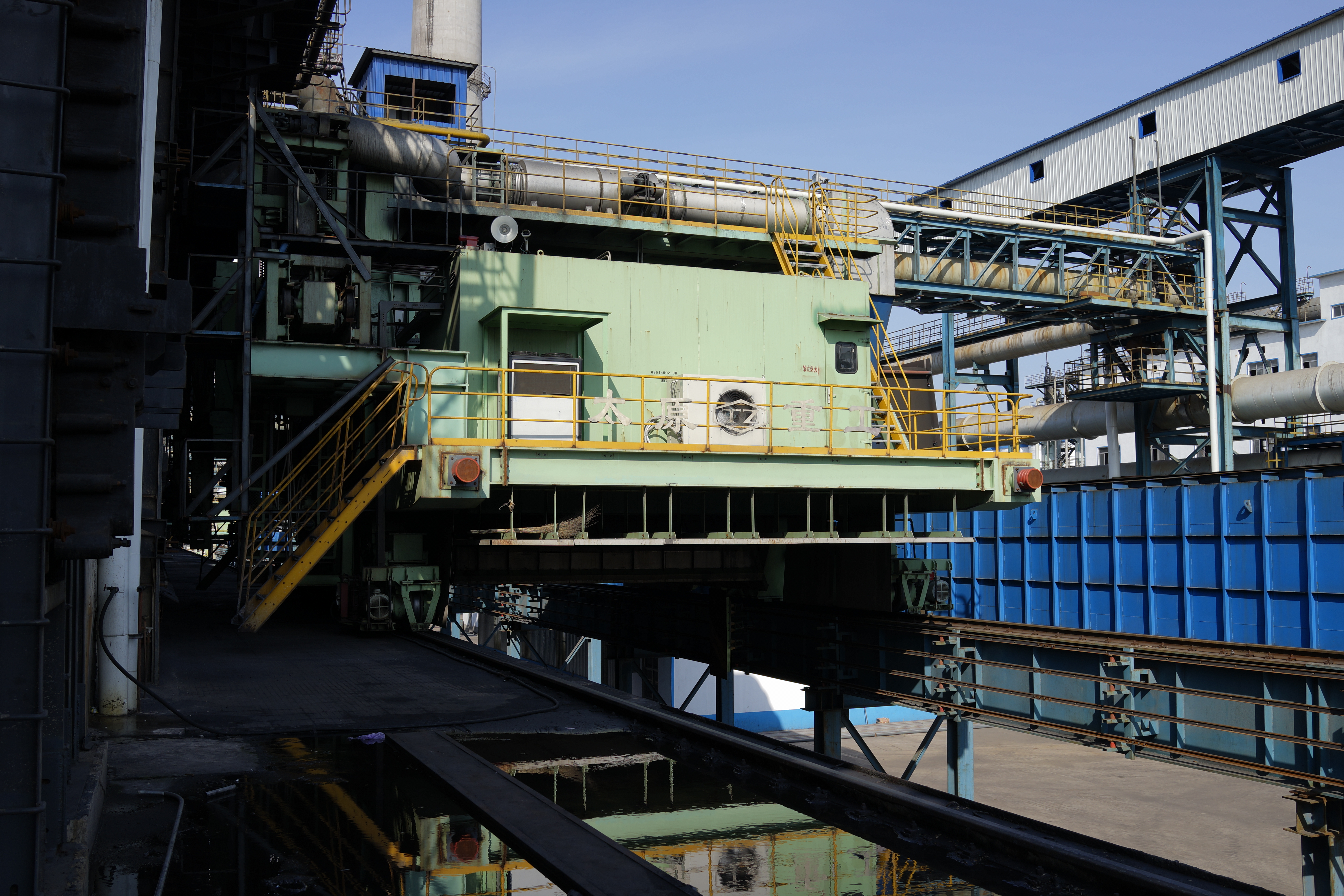 搗固型焦?fàn)t機(jī)械設(shè)備包含煉焦流程的全套機(jī)械設(shè)備:給料機(jī)完成煤粉由煤塔向裝煤車的轉(zhuǎn)運(yùn);搗固機(jī)將松散煤粉壓實(shí)形成煤餅;裝煤車接收煤餅并將其輸送至炭化室進(jìn)行煉焦;推焦車將焦炭由炭化室推送至熄焦車/焦罐車;攔焦車完成炭化室與熄焦車/焦罐車的連通;電機(jī)車是熄焦車/焦罐車的牽引設(shè)備,完成焦炭由煉焦?fàn)t區(qū)到熄焦塔/干熄焦區(qū)的轉(zhuǎn)運(yùn);熄焦車接收熾熱焦炭,并在煤塔下完成濕熄焦過(guò)程;焦罐車接收焦炭后輸送至干熄焦區(qū)域進(jìn)行干熄焦區(qū)域進(jìn)行干熄焦工藝;導(dǎo)煙車負(fù)責(zé)收集與處理裝煤推焦過(guò)程中產(chǎn)生的煙塵;SCP機(jī)集搗固機(jī)、給料機(jī)、裝煤車、推焦車于一體,可實(shí)現(xiàn)移動(dòng)搗固,提高生產(chǎn)效率。