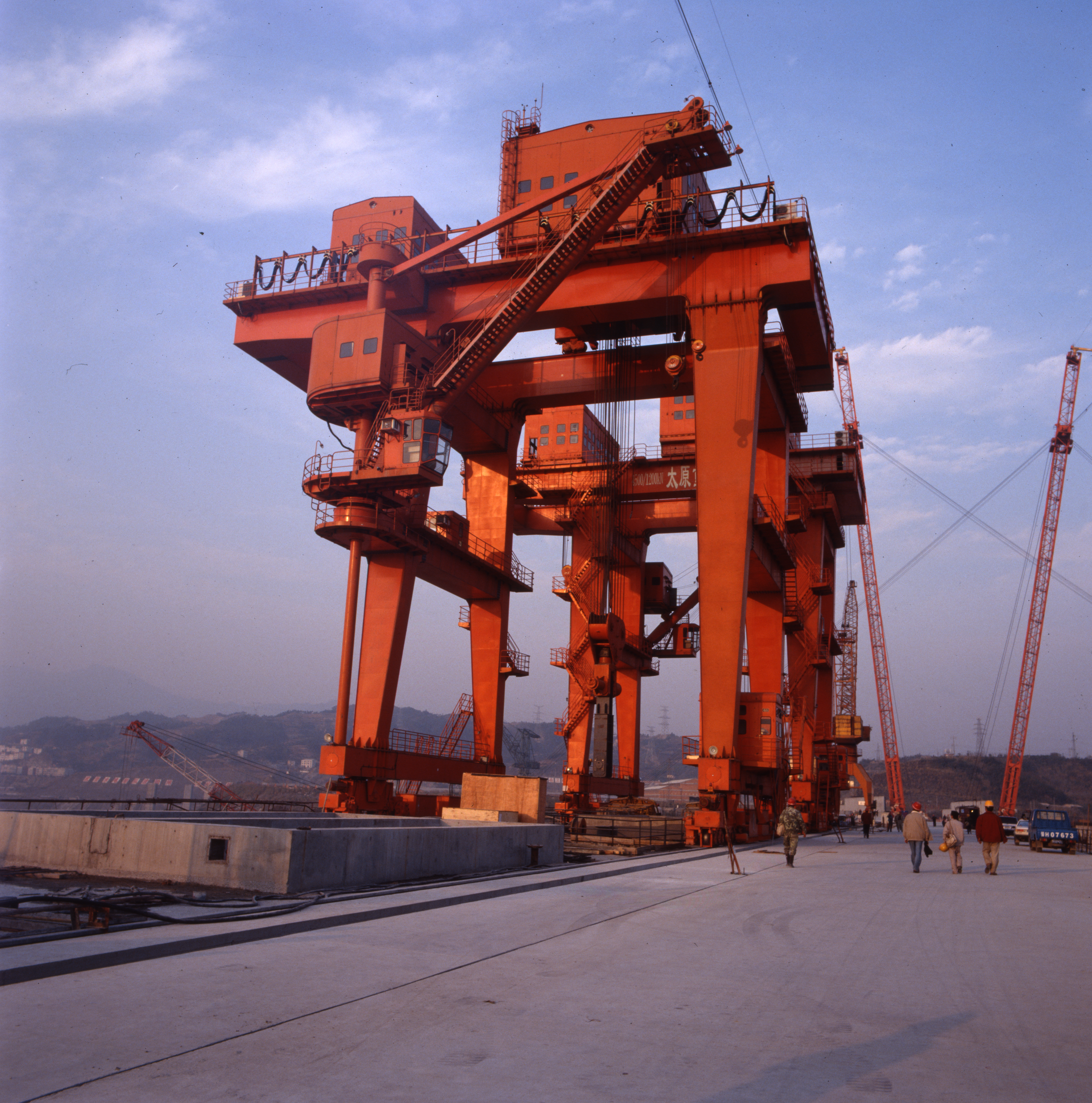 公司已經(jīng)生產(chǎn)數(shù)百臺(tái)大型壩頂門式起重機(jī),產(chǎn)品遍布于國(guó)內(nèi)外百余座水電站。三門峽水電站350t門式起重機(jī),是新中國(guó)首批大型壩頂門式起重機(jī)之一,平均每年使用頻率400多次,經(jīng)常超負(fù)荷運(yùn)行,最大起重負(fù)荷超過(guò)540t,從1961年服役至今,該設(shè)備運(yùn)行狀況良好;龍羊峽水電站500t雙向門式起重機(jī),是中國(guó)最大的多圓心弧形軌道門式起重機(jī)之一,成功經(jīng)受了高海拔、高嚴(yán)寒和特大洪峰的嚴(yán)峻考驗(yàn),運(yùn)行狀況良好;在三峽水電站壩頂,矗立著5臺(tái)500t門式起重機(jī)群。