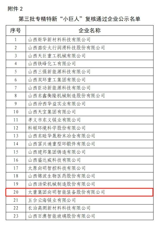 太原重工軌道交通設(shè)備有限公司成功入選第六批專精特新“小巨人”企業(yè),這是軌道公司繼2022年入選山西省專精特新企業(yè)后,完成的又一次榮譽(yù)進(jìn)階。如果說“燈塔工廠”是行業(yè)標(biāo)桿引領(lǐng),那這份來自國家級的認(rèn)可同樣分量十足。此外,在此次的名單中,太重集團(tuán)向明智能裝備股份有限公司順利通過第三批專精特新“小巨人”企業(yè)復(fù)核。