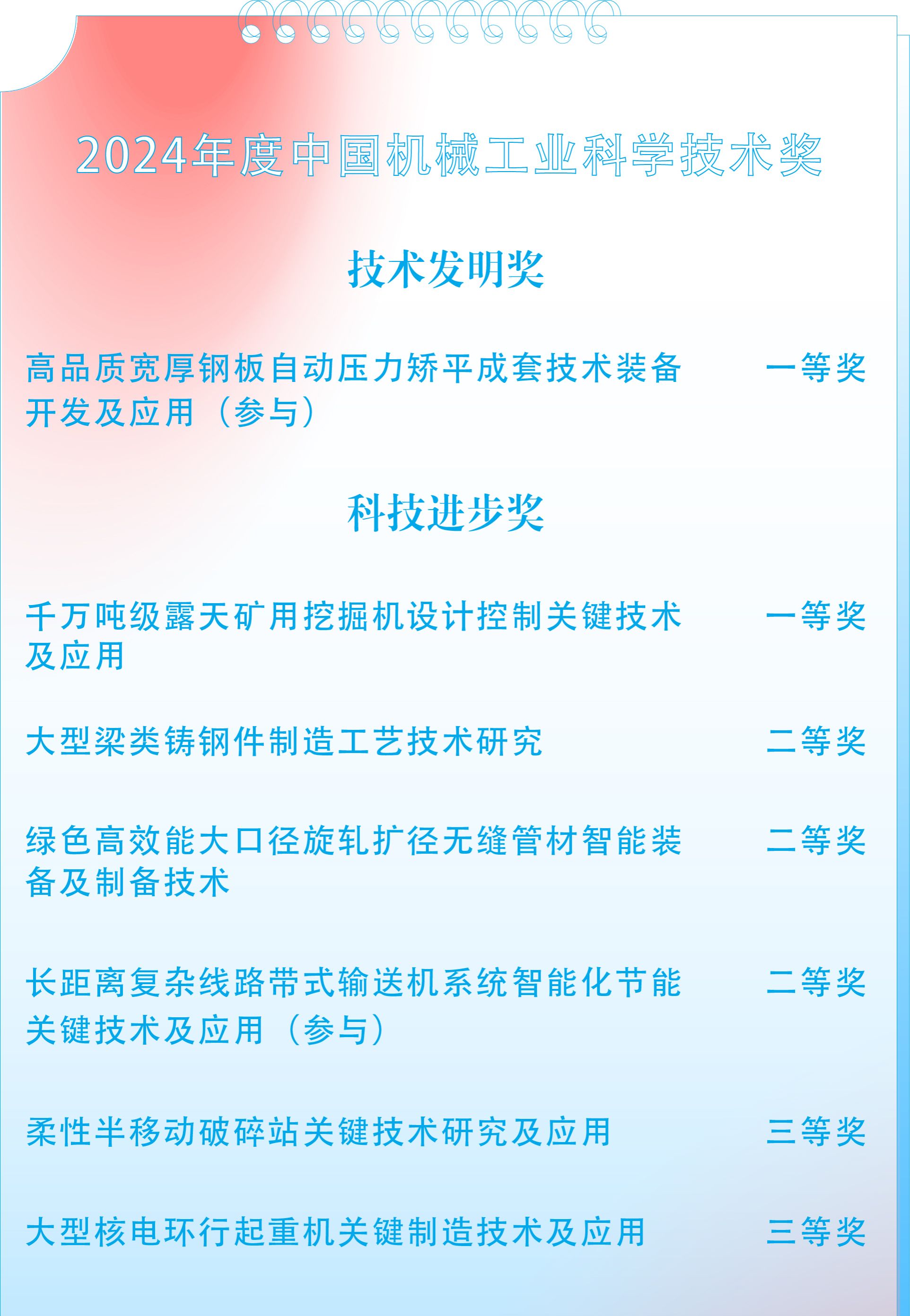近日,2024年度中國(guó)機(jī)械工業(yè)科學(xué)技術(shù)獎(jiǎng)正式公布,公司主持申報(bào)的5個(gè)項(xiàng)目和參與申報(bào)的2個(gè)項(xiàng)目全部獲獎(jiǎng)。
