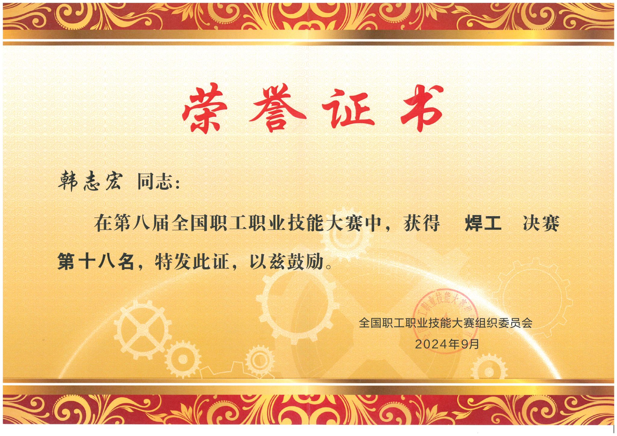 此外,公司技術(shù)中心焊接工藝研究所焊接專家樊志勤,在大賽期間積極籌備,認(rèn)真做好各項服務(wù)工作,榮獲“優(yōu)秀指導(dǎo)教練”稱號。