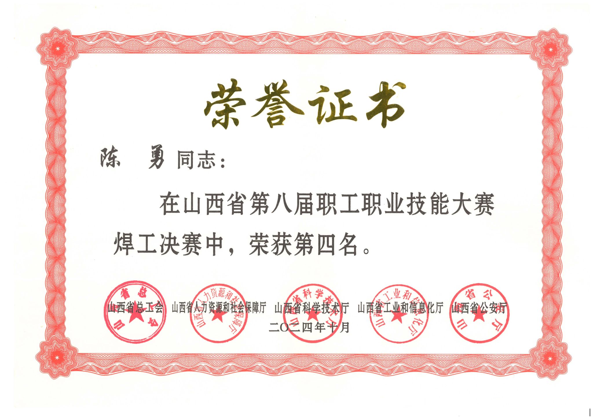 山西省第八屆職工職業(yè)技能大賽總結(jié)大會公司代表太原市榮獲焊工團(tuán)體第一名