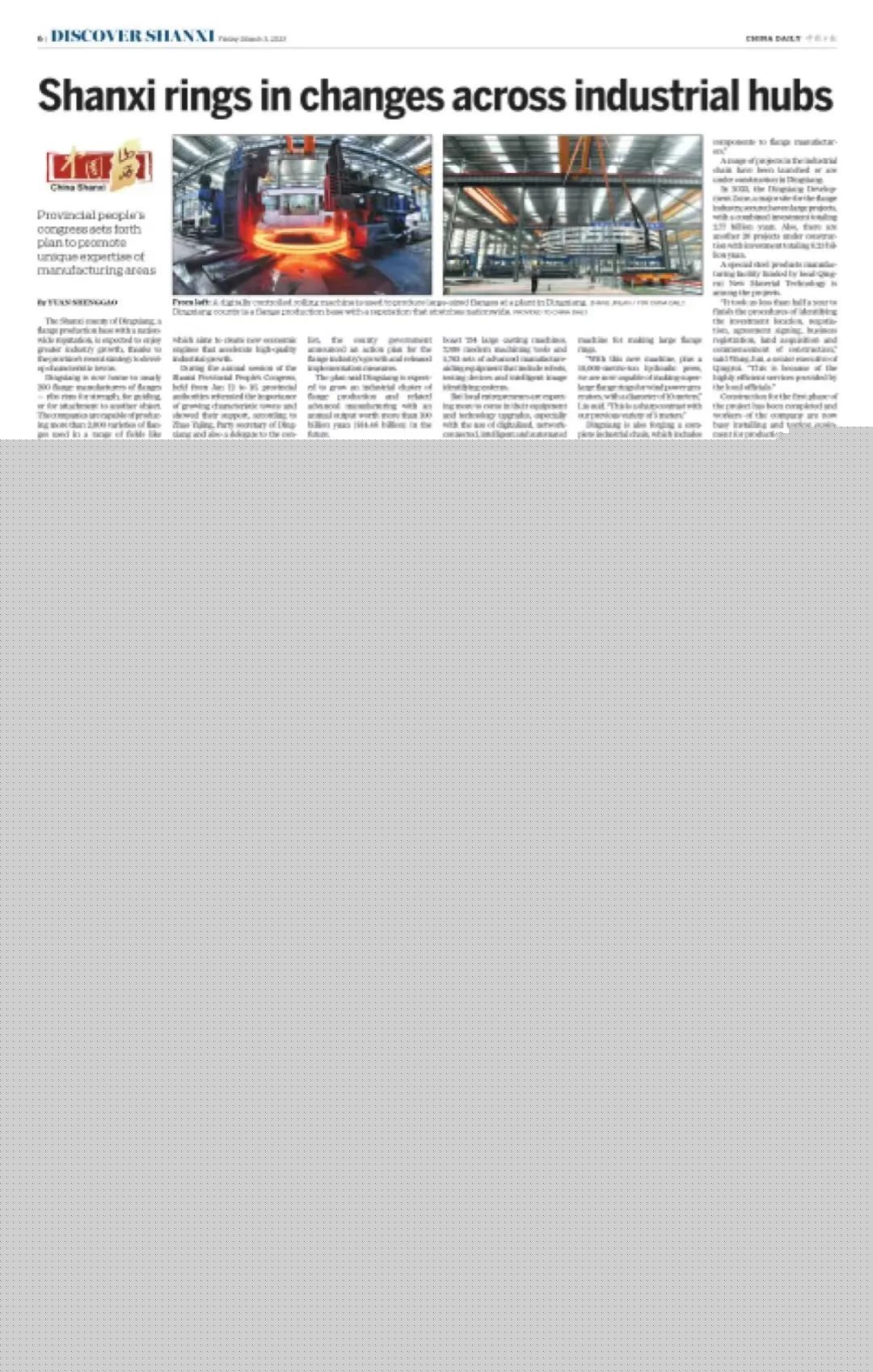 今日,中國(guó)日?qǐng)?bào)全英文刊發(fā)《Machine company boosts efficiency and growth》文章,報(bào)道太重集團(tuán)立足公司產(chǎn)業(yè)優(yōu)勢(shì),聚焦智能礦用挖掘機(jī)、軌道交通等領(lǐng)域,推進(jìn)智能設(shè)計(jì)、智能制造、智能產(chǎn)品、智能服務(wù),持續(xù)提升重型裝備制造業(yè)的技術(shù)含量,積極在全省轉(zhuǎn)型發(fā)展中發(fā)揮龍頭帶動(dòng)作用,助力我省建設(shè)中部地區(qū)先進(jìn)制造業(yè)基地和數(shù)字經(jīng)濟(jì)發(fā)展新高地,在不斷推動(dòng)產(chǎn)業(yè)形態(tài)轉(zhuǎn)型升級(jí)中勇立新功。
