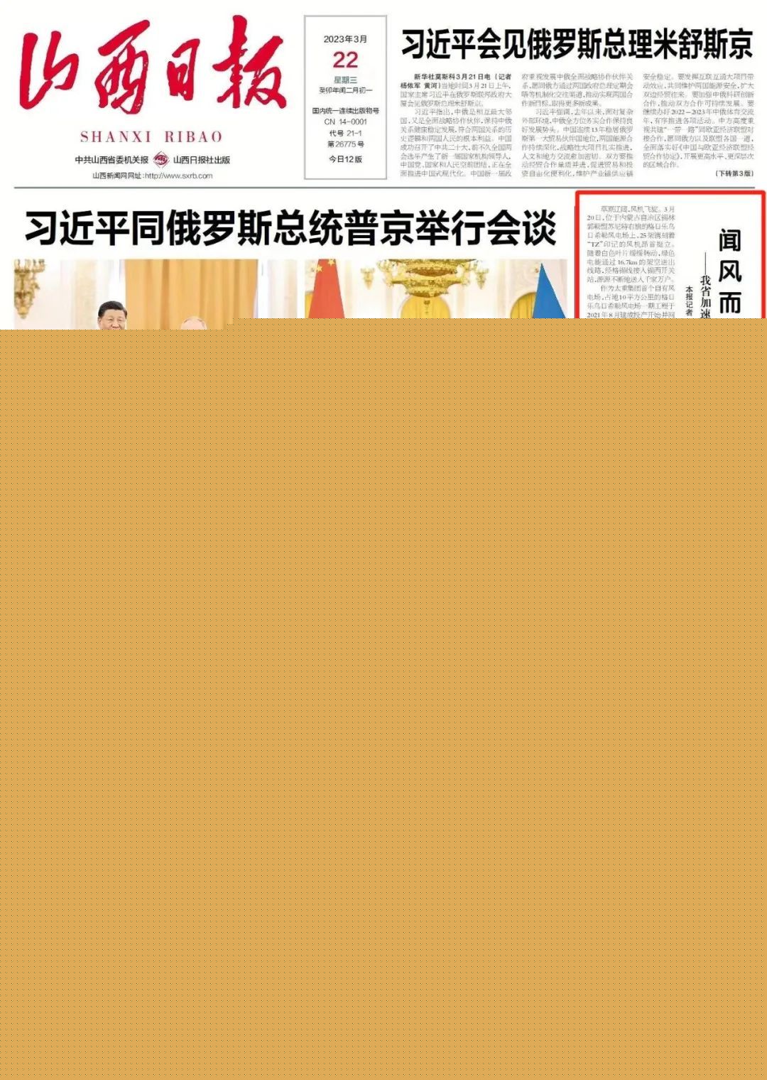 今天,山西日?qǐng)?bào)頭版“重點(diǎn)產(chǎn)業(yè)鏈高質(zhì)量發(fā)展觀察”專欄,以“我省風(fēng)電產(chǎn)業(yè)集群化、鏈條式發(fā)展”為題,報(bào)道了太重集團(tuán)聞風(fēng)而動(dòng)、聚勢(shì)賦能,發(fā)展壯大風(fēng)電產(chǎn)業(yè)鏈、創(chuàng)新鏈、價(jià)值鏈的生動(dòng)實(shí)踐。