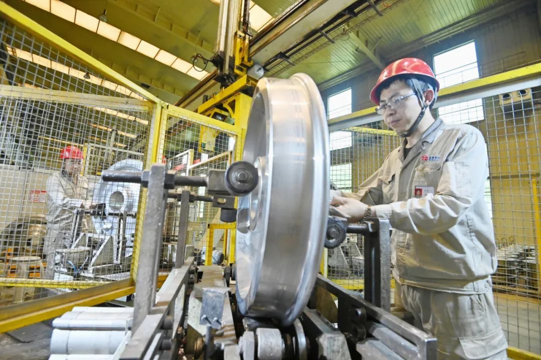 6月14日,走進太重軌道公司車輪廠二線生產(chǎn)車間,熱浪襲來,機器轟鳴,鋸切、加熱、預(yù)成型、壓制、軋制、沖孔、成型……叮當鋼鐵碰撞出激昂的旋律,企業(yè)為趕制用戶訂單正加足馬力。太重軌道公司是全球唯一的軌道交通用車輪、車軸、齒輪箱及輪對產(chǎn)品的全譜系全系列全流程研發(fā)制造基地,近期,該企業(yè)持續(xù)技術(shù)創(chuàng)新、對標挖潛、降本增效,實現(xiàn)了產(chǎn)品質(zhì)量更優(yōu)、效率更高、成本更低,為全球供應(yīng)著最具競爭力的輪軸產(chǎn)品。