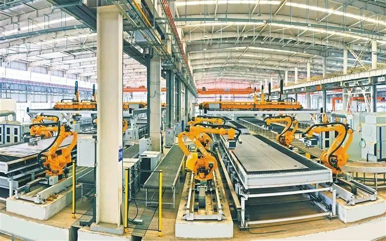 距離老廠區(qū)50公里外,山西轉(zhuǎn)型綜改示范區(qū)瀟河產(chǎn)業(yè)園區(qū)內(nèi),太重智能高端裝備產(chǎn)業(yè)園已拔地而起。在這里,太重所有裝備制造都能實(shí)現(xiàn)以工序?yàn)閱挝坏倪B續(xù)生產(chǎn)。各種機(jī)器人設(shè)備夜以繼日“上班”,智能導(dǎo)引搬運(yùn)車來(lái)回穿梭、自動(dòng)取送貨,一張鋼板經(jīng)過(guò)全流程生產(chǎn)線后,即可最大程度地切割出各類高質(zhì)量零部件,智能產(chǎn)線上“只見(jiàn)物,不見(jiàn)人”。