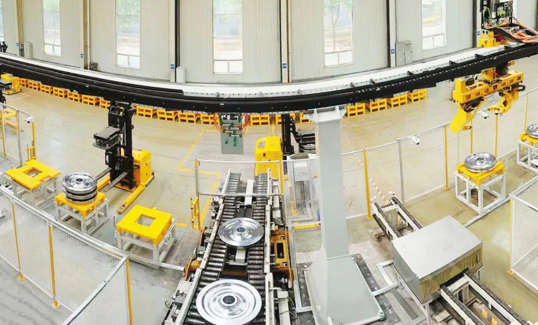 軌道車(chē)輪廠二線,一片片車(chē)輪搭載著5G網(wǎng)絡(luò)和AGV小車(chē)完成機(jī)加工和檢測(cè)工序,實(shí)現(xiàn)了毛坯到精品的快速蛻變。